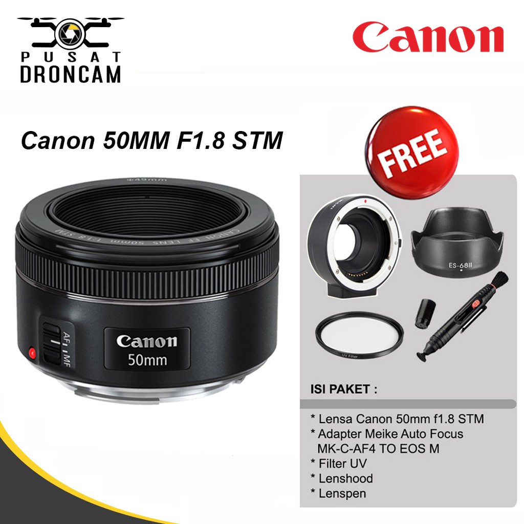 Jual Lensa Fix Canon 50mm F1 8 Stm Bonus Lenspen Lens Hood Filter Uv Adapter Meike Eos M To Lensa Canon Dslr Dg Pro